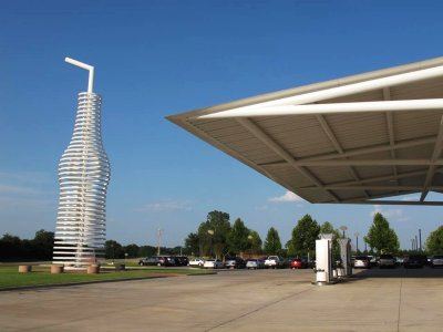 奧克拉荷馬州旅行時,他就將汽水塔列入參觀首選,一到現場果然沒有令人失望。夜晚時,汽水高塔還會點燈,讓人感受加油站的用心。「這樣美麗的加油站,好像